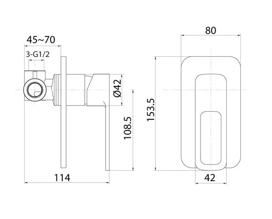 Встраиваемый смеситель Slide стильного матового черного цвета имеет лаконичный дизайн и предназначен для установки в зоне душевого ограждения. Может подключаться к одному душевому аксессуару на выбор (душевому гарнитуру, верхней или ручной лейке). За счет скрытого монтажа и отсутствия выступающих элементов он экономит пространство и прост в уборке. Подключается с помощью любых труб, диаметр входных отверстий ½ дюйма.