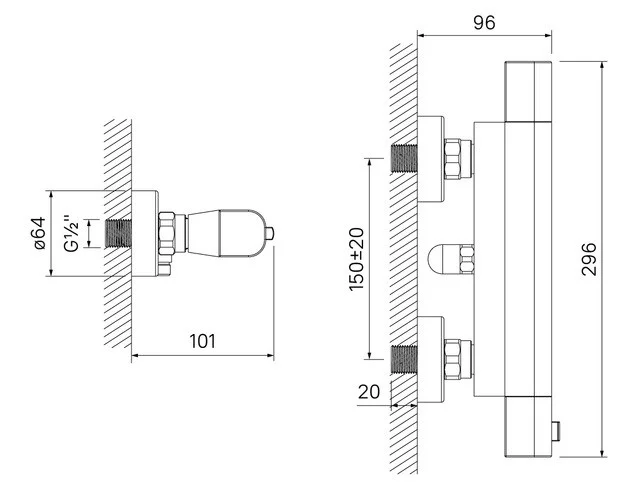 Смеситель для душа с термостатом универсальный, подходит для любого расположения труб горячей и холодной воды, латунь, увеличенное никель-хромовое покрытие, термостатический картридж Sedal.