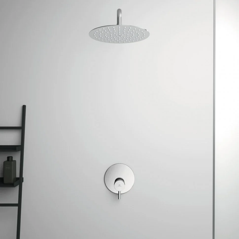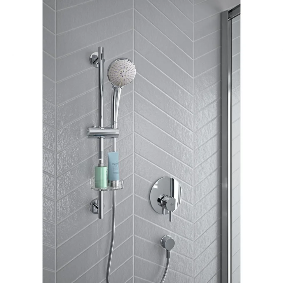 CERALINE Встраиваемый смеситель для душа, комплект №1 A1300NU (встраиваемая часть) + комплект №2 (внешняя часть), картридж 47 мм функцией HWTC (ограничение максимальной температуры горячей воды), с функцией CLICK (ограничение потока воды), металлическая рукоятка с индикаторами горячей / холодной воды