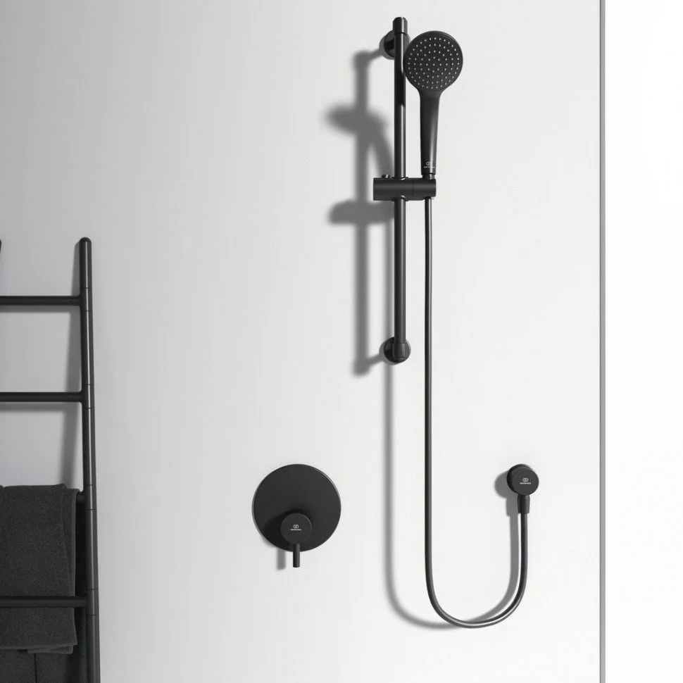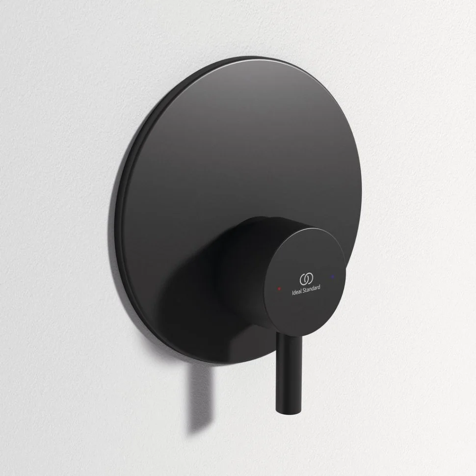 CERALINE Встраиваемый смеситель для душа, комплект №1 A1300NU (встраиваемая часть) + комплект №2 (внешняя часть), картридж 47 мм функцией HWTC (ограничение максимальной температуры горячей воды), с функцией CLICK (ограничение потока воды), металлическая рукоятка с индикаторами горячей / холодной воды, металлическая накладка