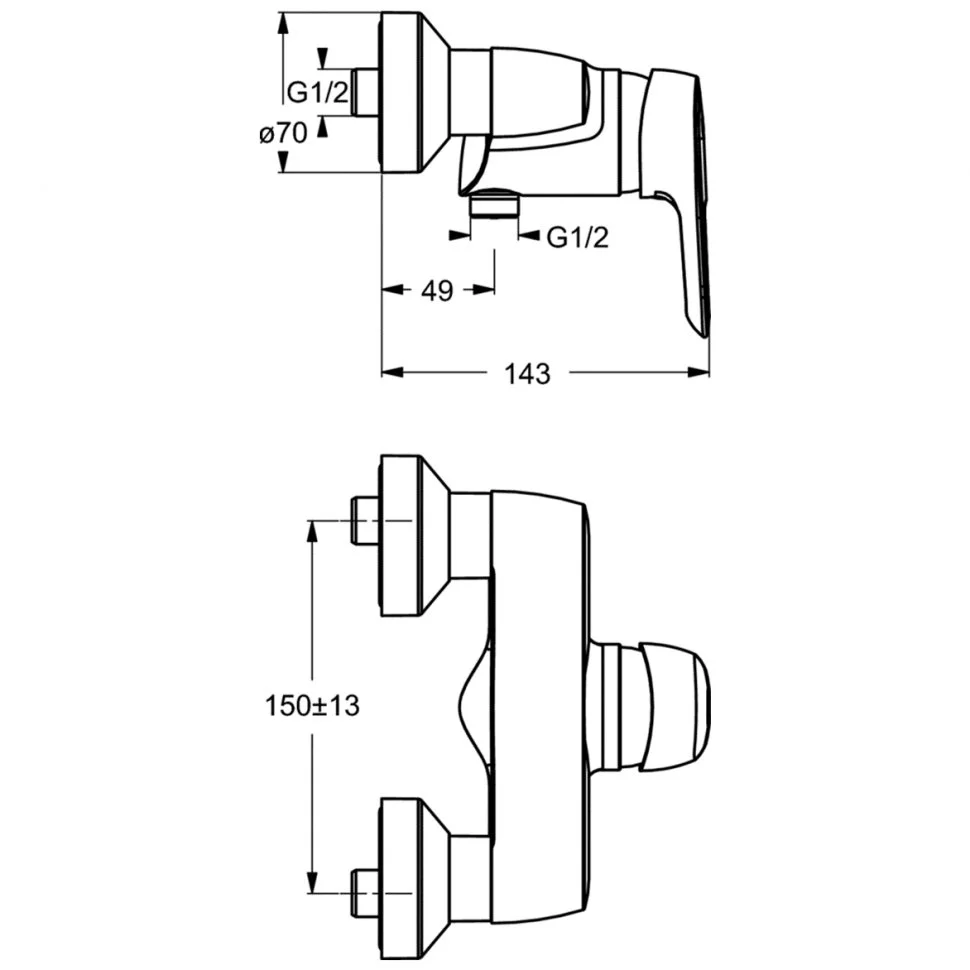 CERAMIX BLUE Настенный однорукоятковый смеситель для душа, скрытый монтаж на эксцентриках, картридж 47 мм IS с функцией CLICK (ограничение потока воды), с функцией HWTC (ограничение максимальной температуры горячей воды), литой латунный корпус, без душевого гарнитура, металлическая рукоятка с индикаторами горячей / холодной воды, встроенный обратный клапан
