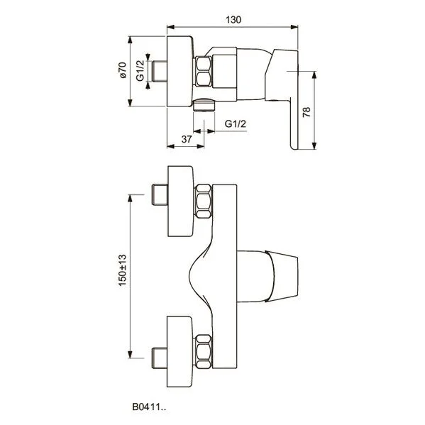 VITO Настенный смеситель для душа, стандартный настенный монтаж, металлические накладки, картридж 40 мм с функцией HWTC (ограничение максимальной температуры горячей воды), с функцией CLICK (ограничение потока воды), без душевого гарнитура, металлическая рукоятка с индикаторами горячей / холодной воды, обратный клапан