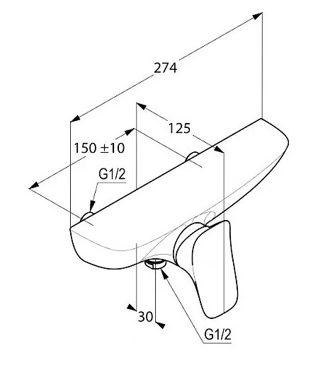 - расстояние между подключением воды 150+10 мм, S-крепление