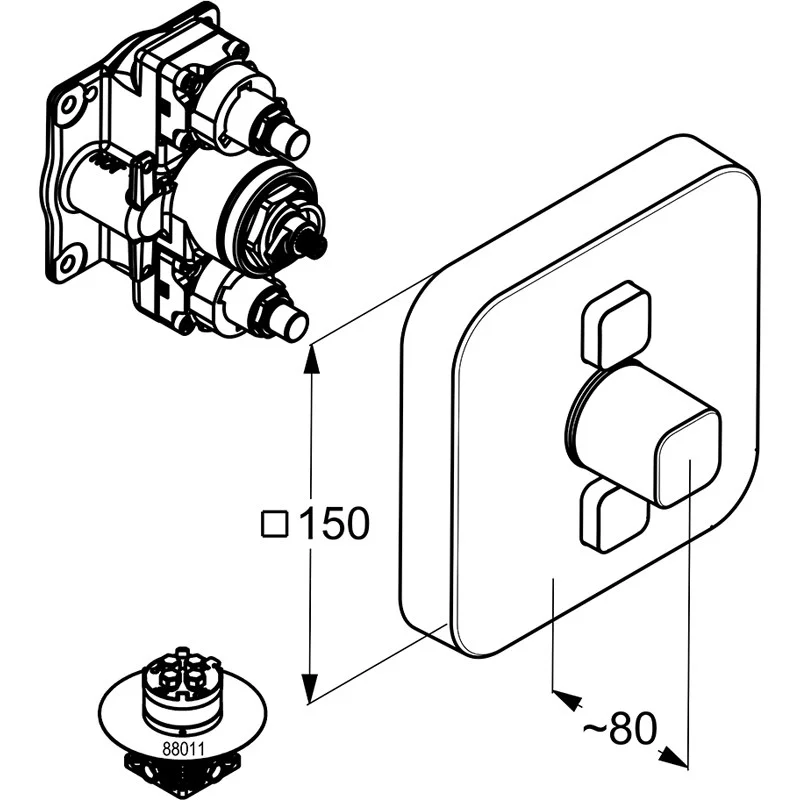 Смеситель Kludi Push 386110538 для душа, внешняя часть, квадратный, для 2-х источников
