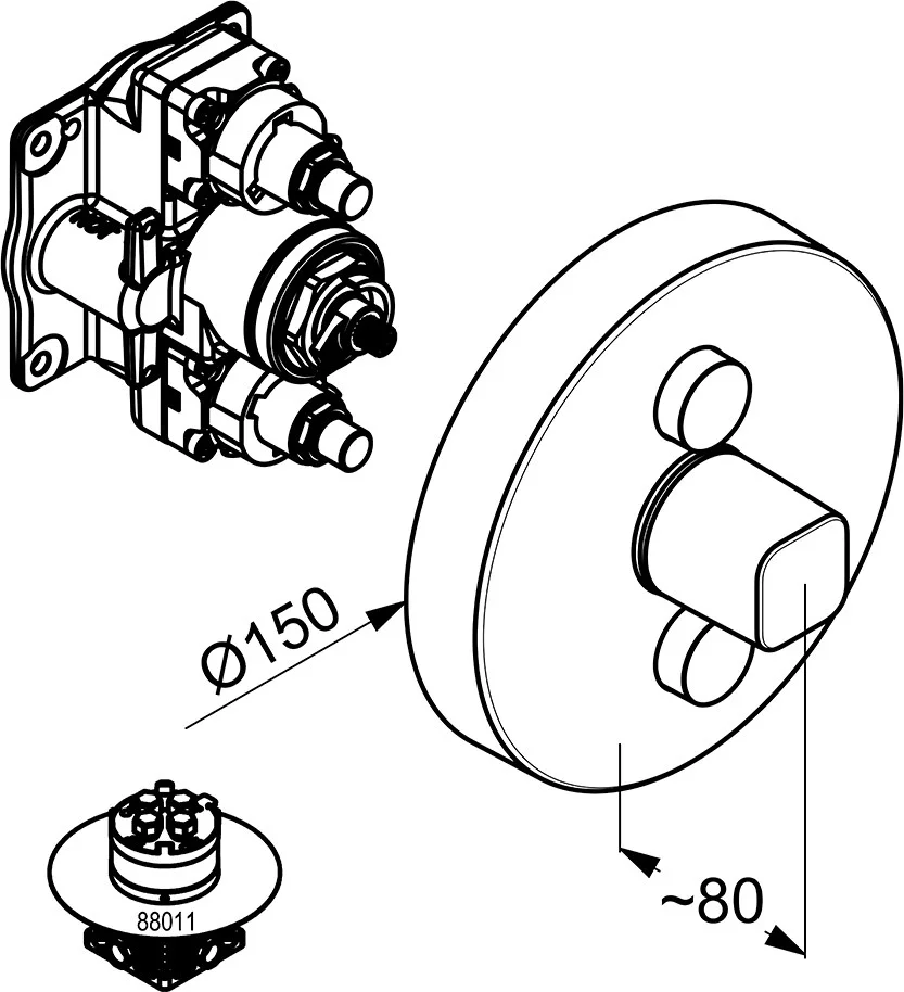 Смеситель для душа Kludi Push 386120538 внешняя часть, круглый, для 2-х источников