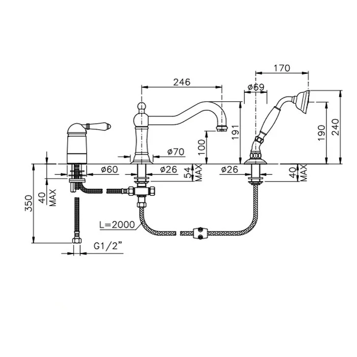 Смеситель для душа Nicolazzi Monocomando Classico P.M. Blanc 3449BZ76