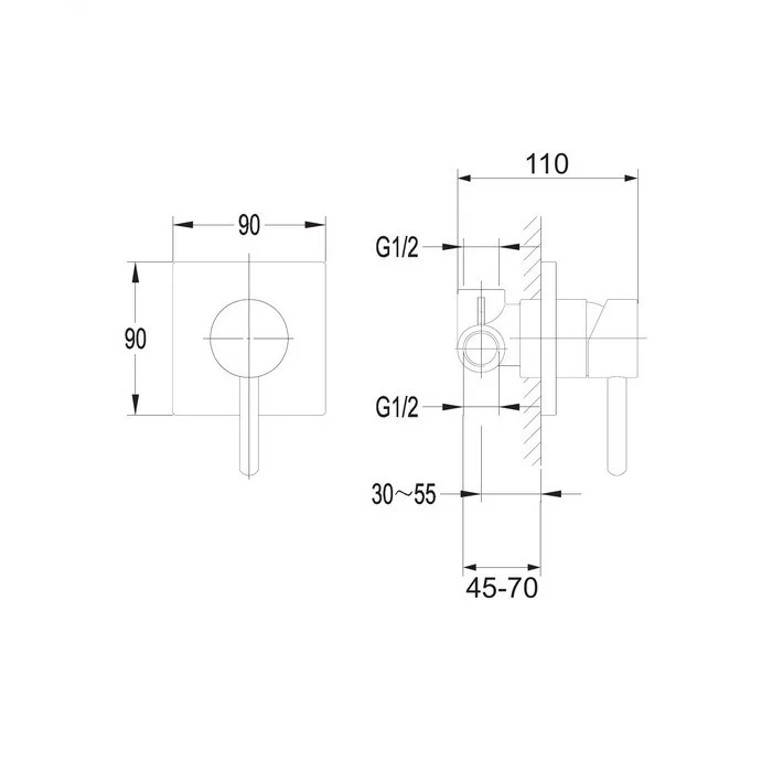 - один выход смешанной воды: 1/2”;