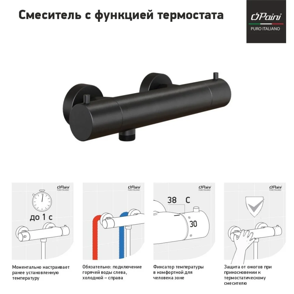 Смеситель для душа Paini Cox 78PZ511TH без аксессуара, с термостатом, черный матовый