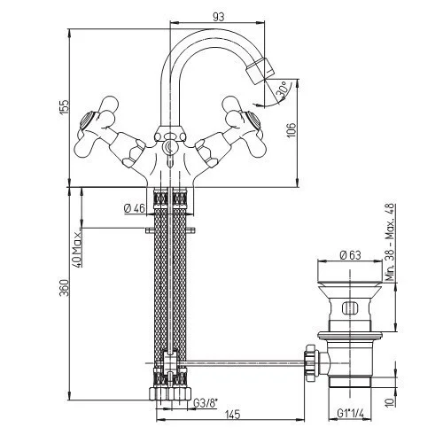 • Устойчивый к ржавчине и известковому налету корпус из латуни с технологией двойного покрытия (никелирование и хромирование) для покрытия хром CR.