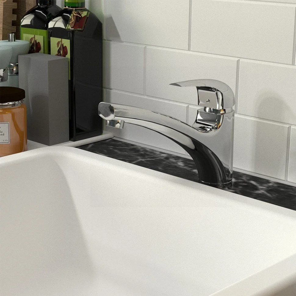 - Встраиваемый монтаж скрывает все соединения и оставляет на виду только рычаг управления, что добавляет в интерьер дизайнерский акцент, экономя пространство.