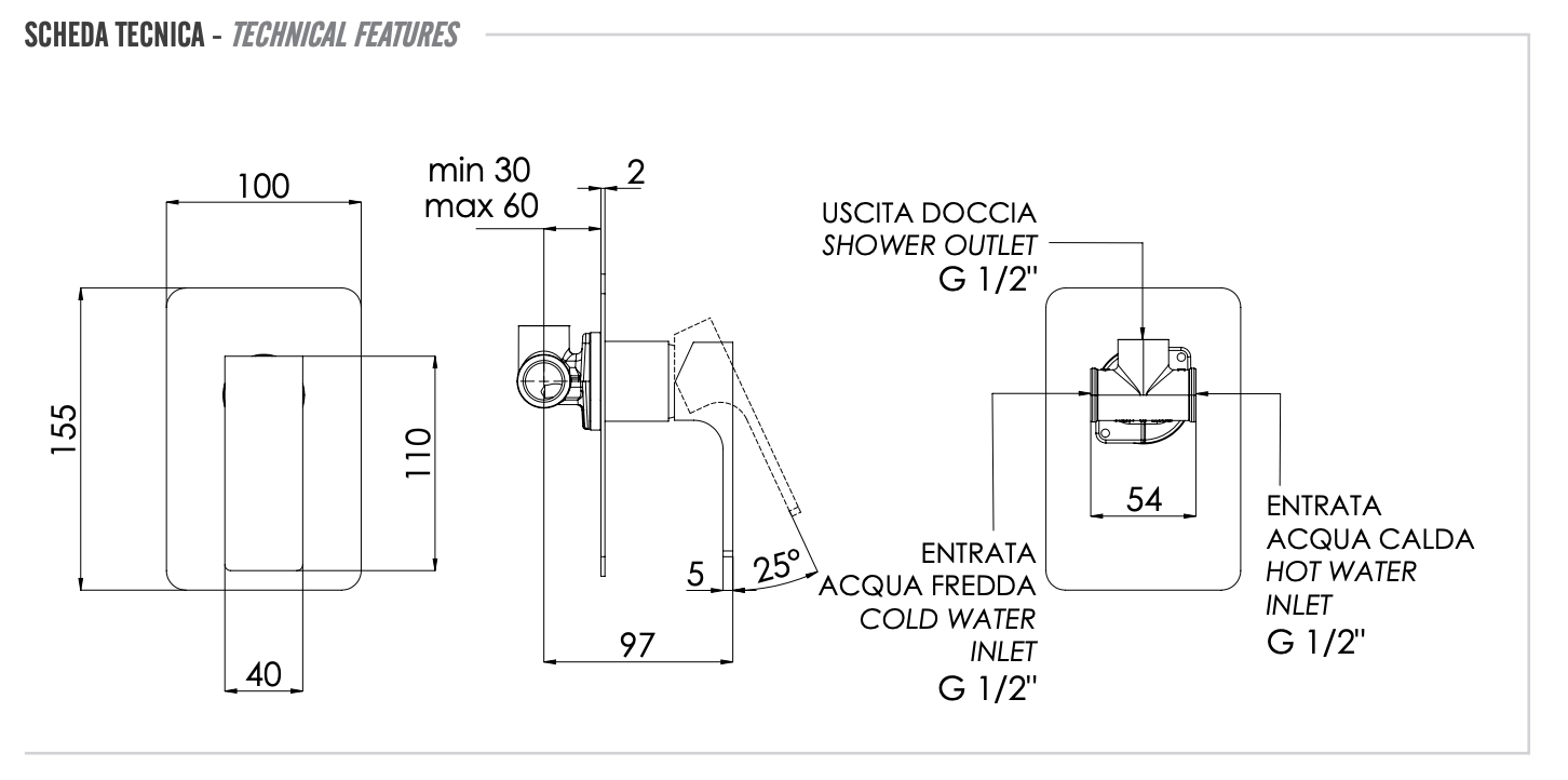 Смеситель для душа Remer Absolute AU30NPO, никель матовый брашированный