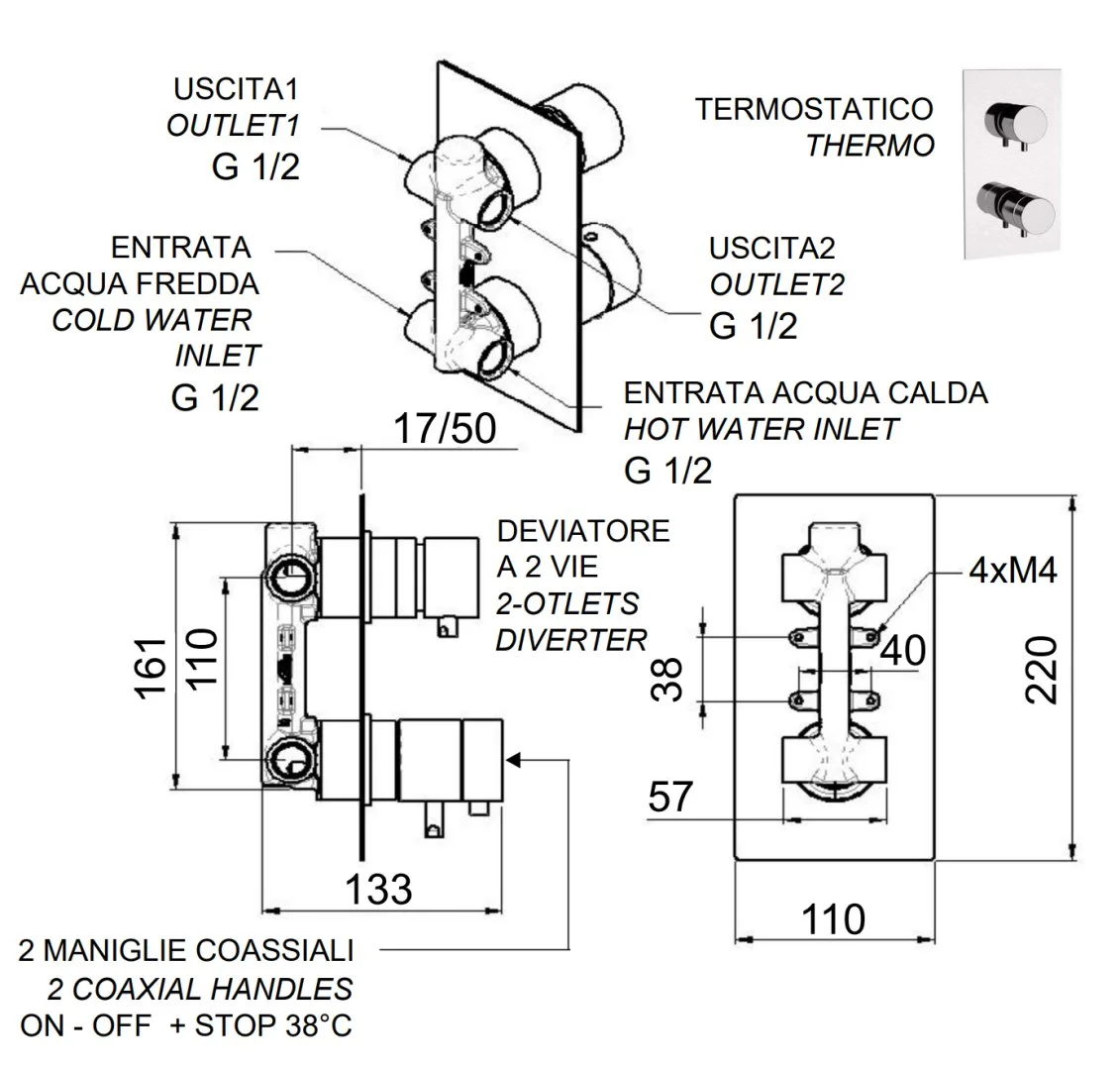 Смеситель для душа Remer Elegance NT92Q термостатический