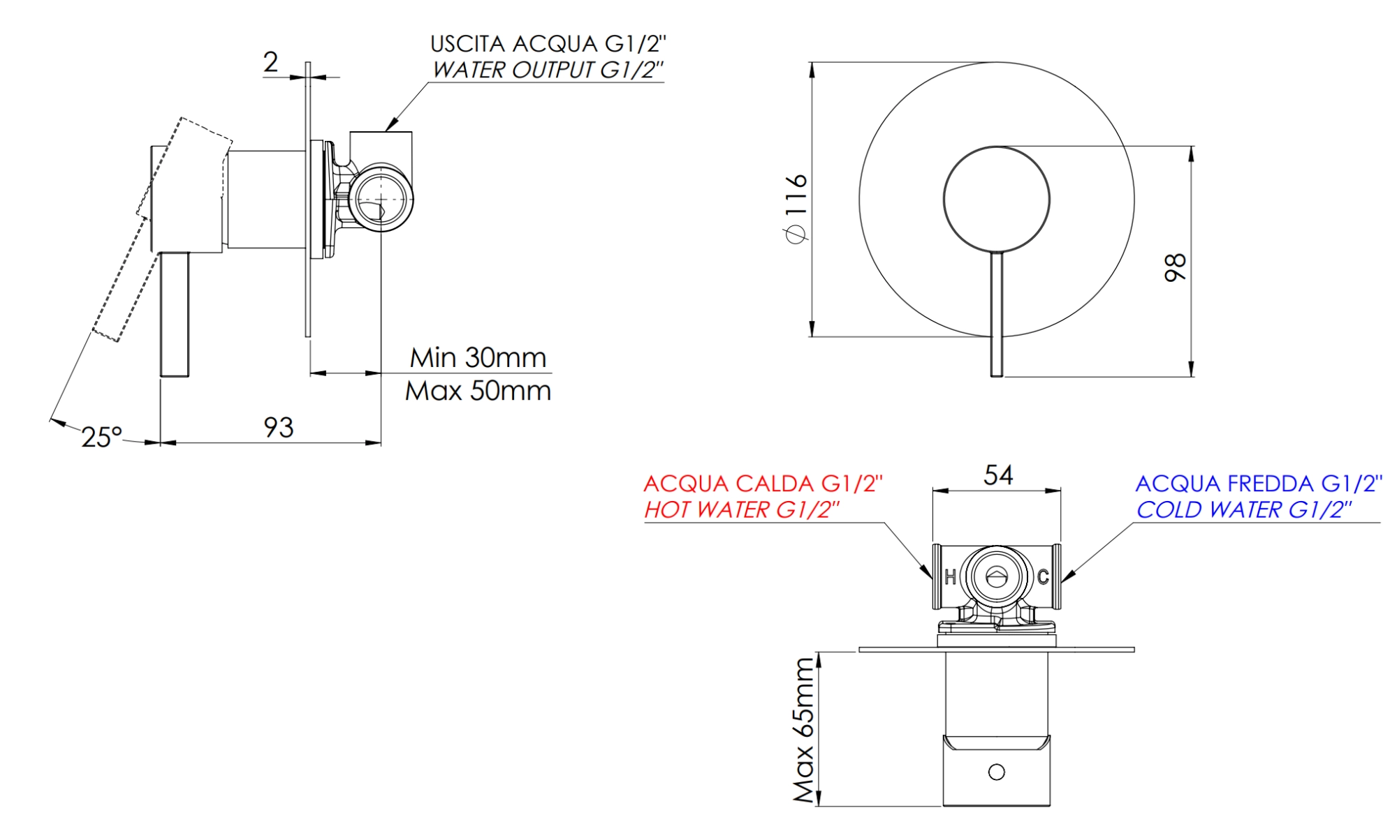 Смеситель для душа Remer Metrica MC30LXV, сталь