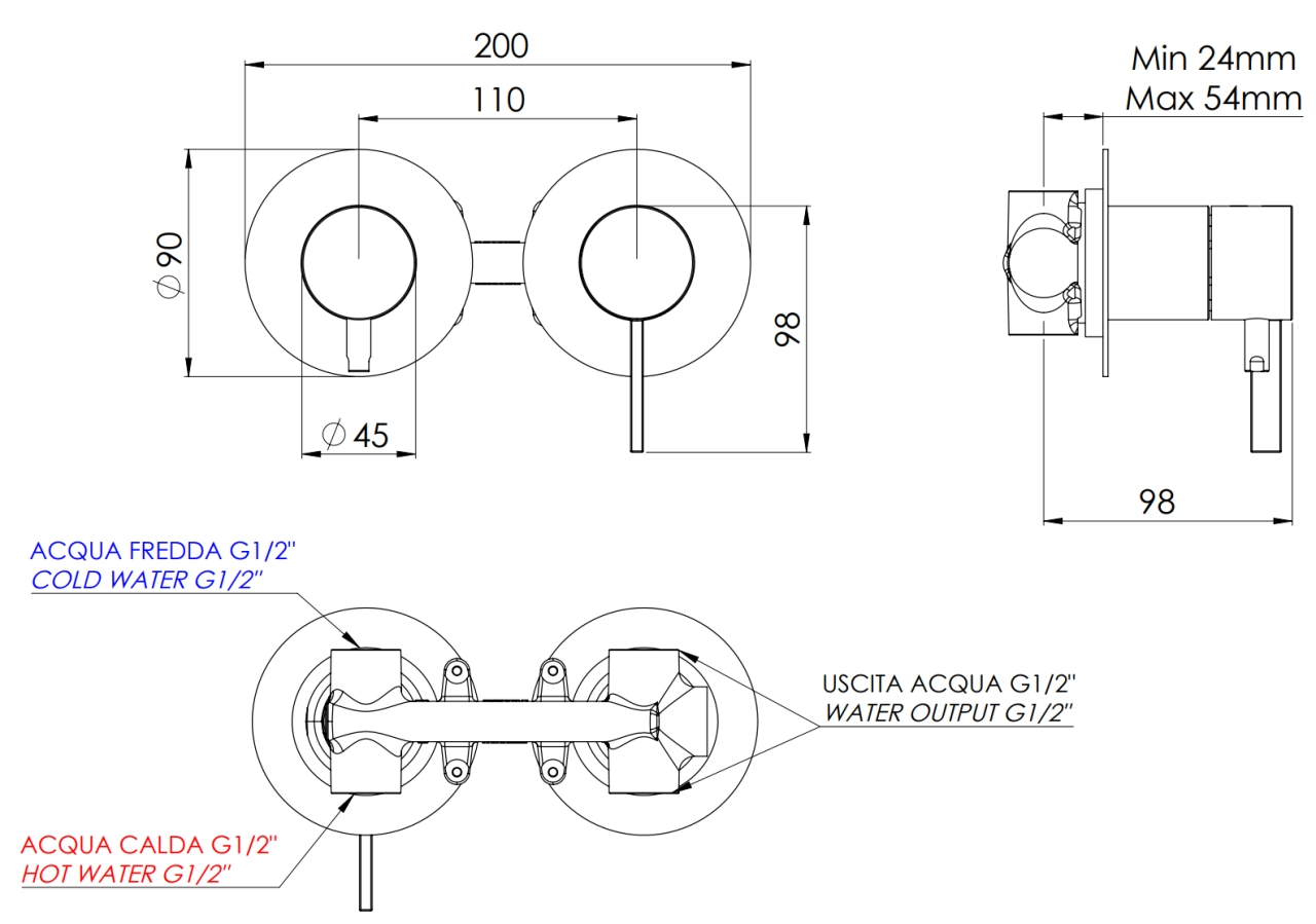 Смеситель для душа Remer Metrica MC92ZPDO, золото глянцевое