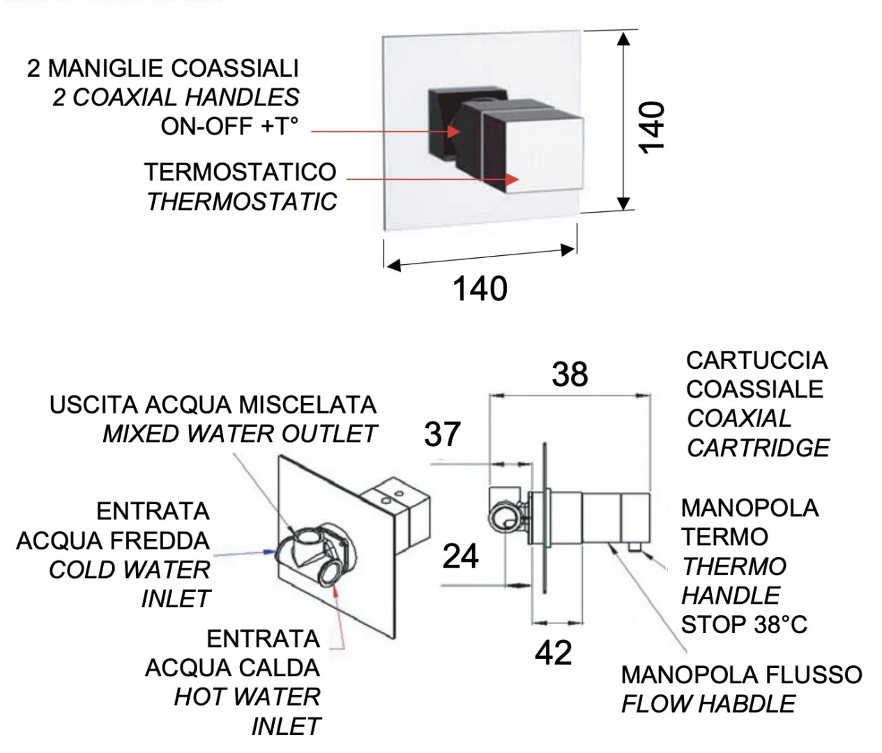 Смеситель для душа Remer Q-Elegance QT30BG термостатический, золото брашированное