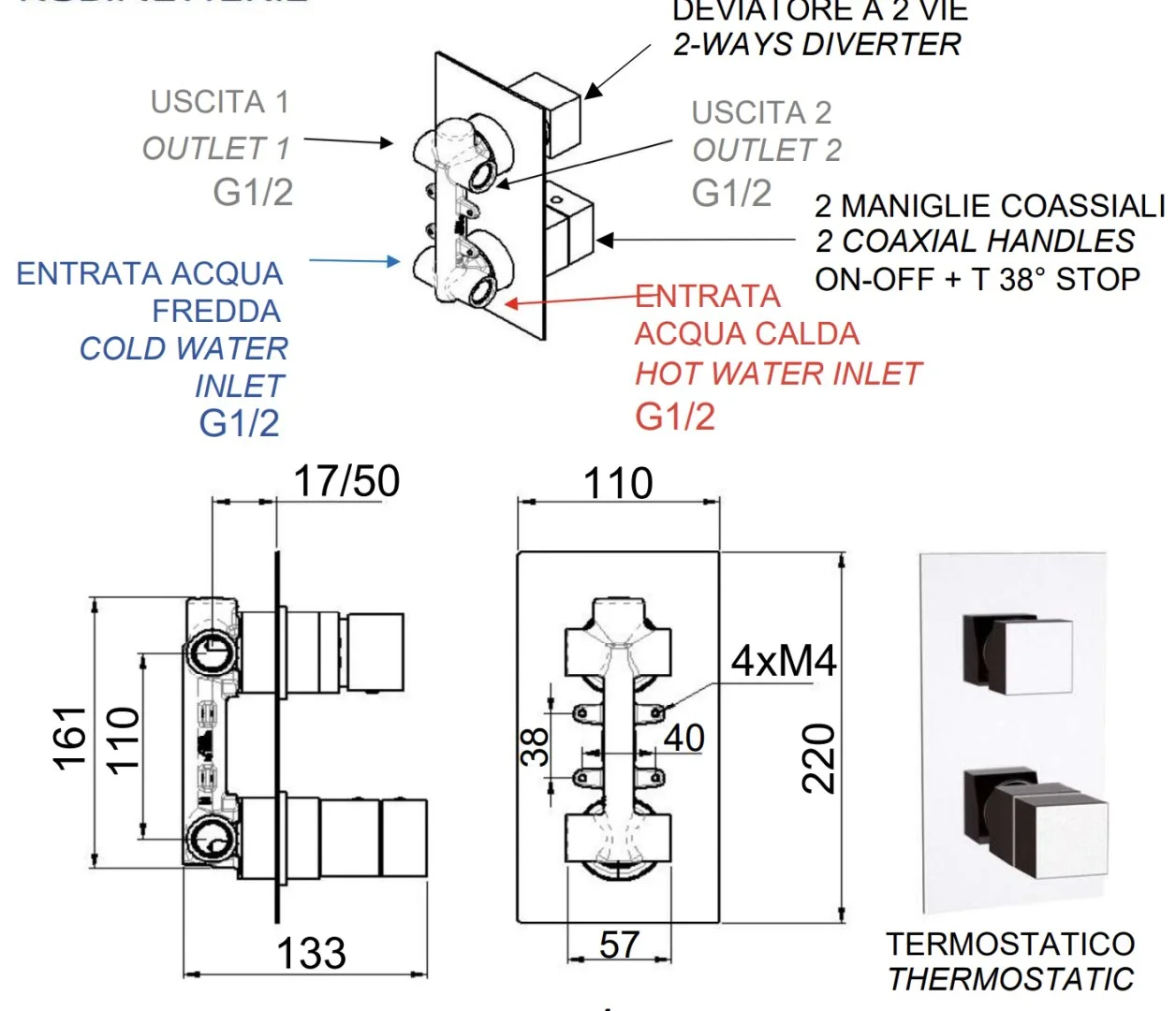 Смеситель для душа Remer Q-Elegance QT92 термостатический
