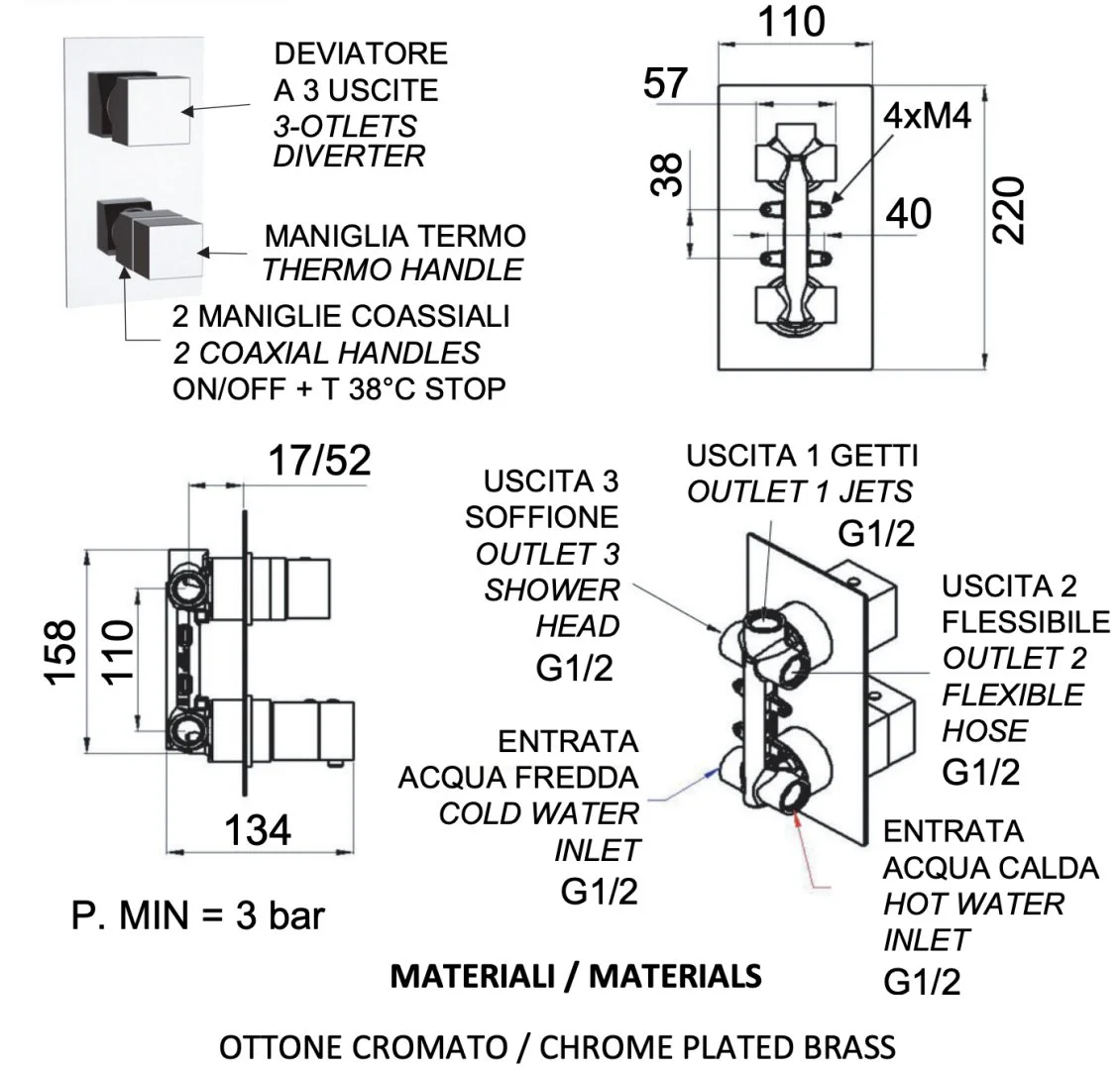 Смеситель для душа Remer Q-Elegance QT93 термостатический