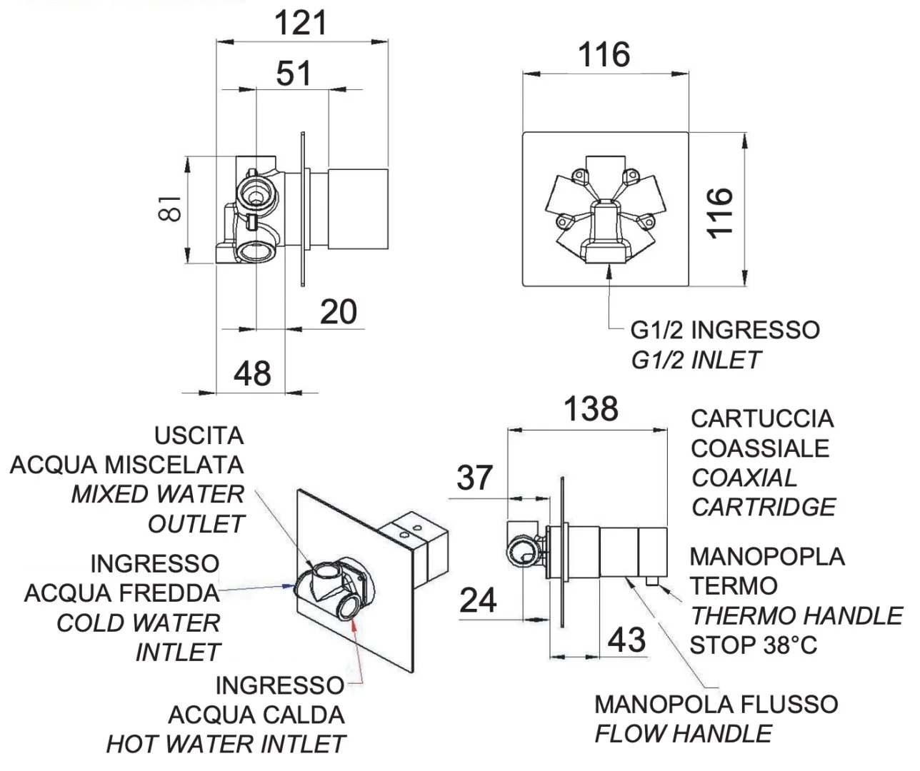 Смеситель для душа Remer Q-Elegance QT94C термостатический
