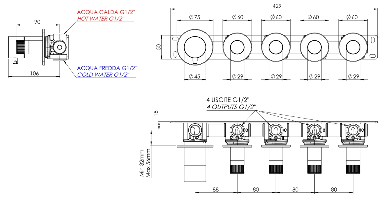 Смеситель для душа Remer X Style N98D4PBG, золото брашированное