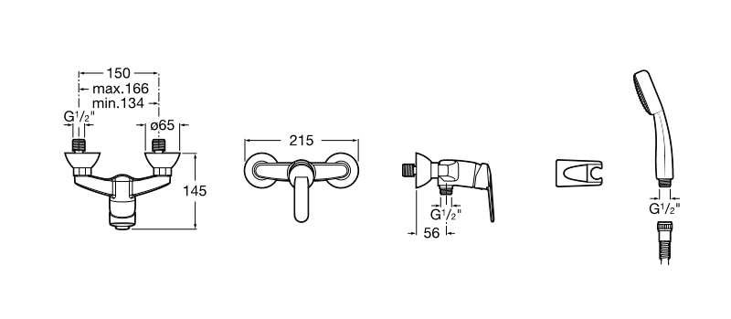 Монтируемый в стену смеситель для душа, гибкий душевой шланг 1.50 м и поворотный душ.