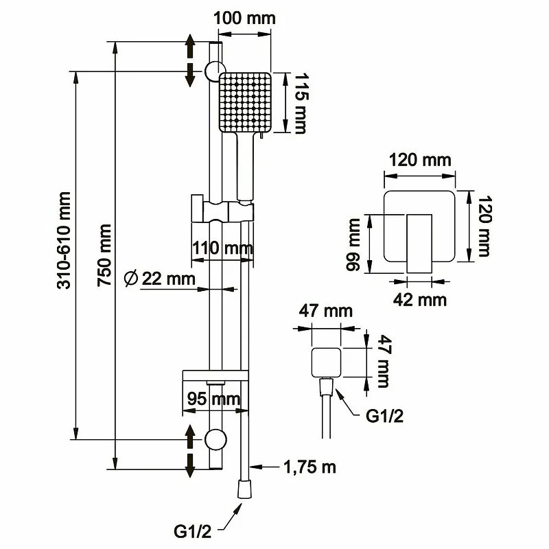 Смеситель для душа Swedbe Platta 5553B с душевым гарнитуром