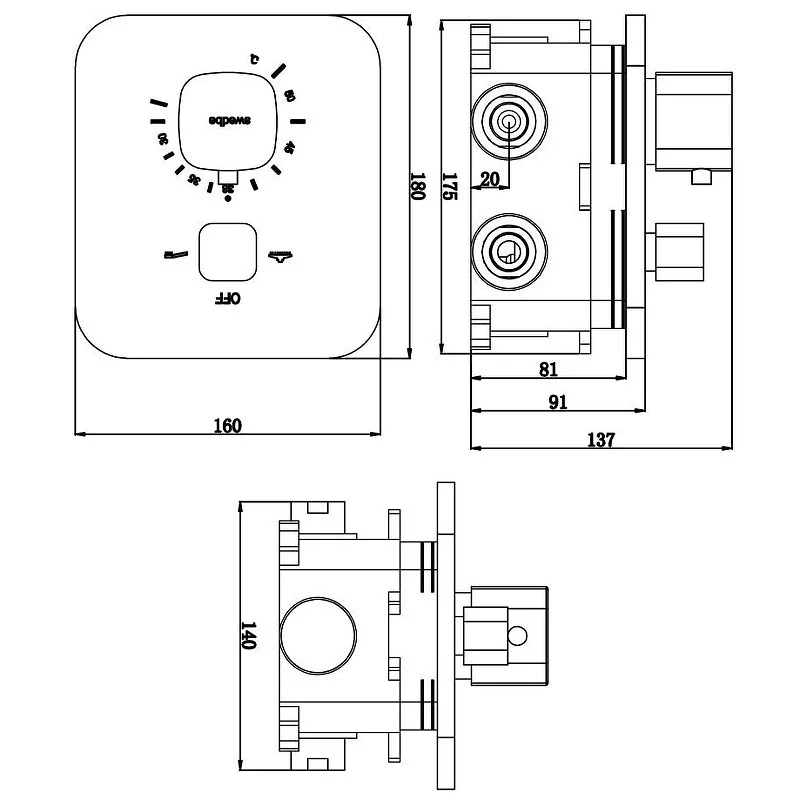 Смеситель для душа Swedbe Platta 9031 термостатический