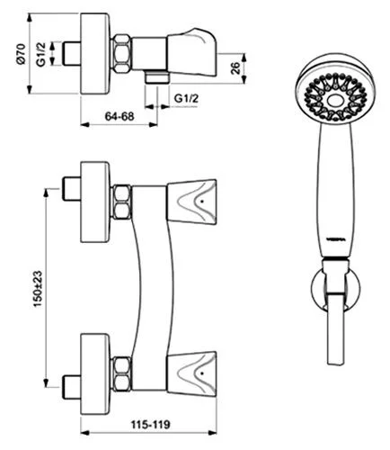 - Душевая лейка Ø70 мм