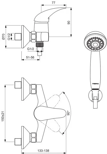 Смеситель Vidima ОРИОН (ORION) BA003AA для душа с душевым гарнитуром, хром