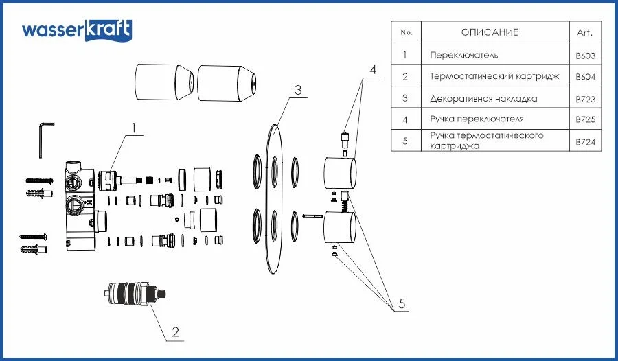 ХарактеристикиТермостатический картридж Vernet (Франция) Керамический поворотный переключатель на душ Hent Обратный клапан Neoperl Переключатель на 3 выхода Смеситель на 3 выхода. Подключается к трем аксессуарам для душа: верхней душевой насадке, лейке для душа и настенному изливу.