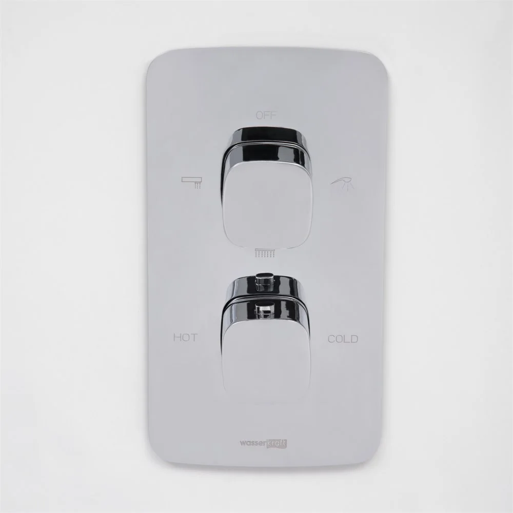 Характеристики Термостатический картридж Vernet (Франция) Обратный клапан Neoperl Керамический поворотный переключатель Смеситель на 3 выхода. Подключается к трем аксессуарам для душа: верхней душевой насадке, лейке для душа и настенному изливу.