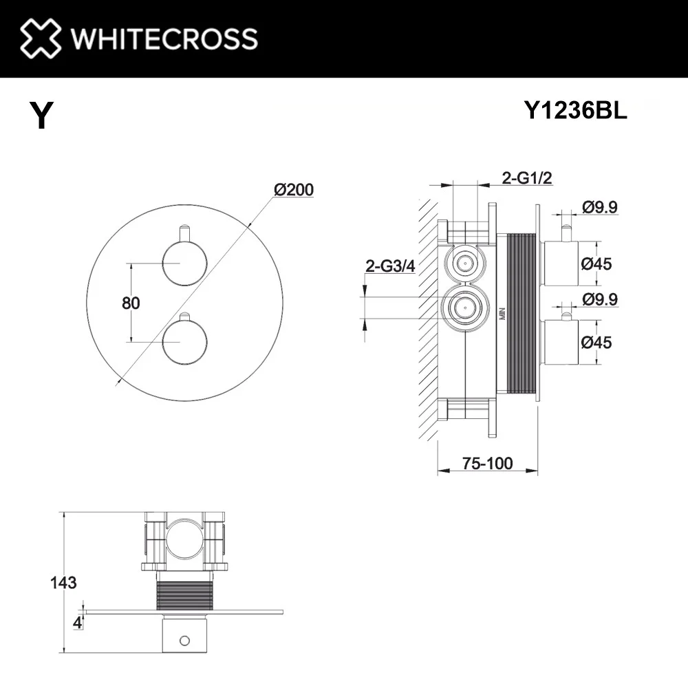 Смеситель для душа WHITECROSS Y Y1236BL термостатический скрытого монтажа черный мат