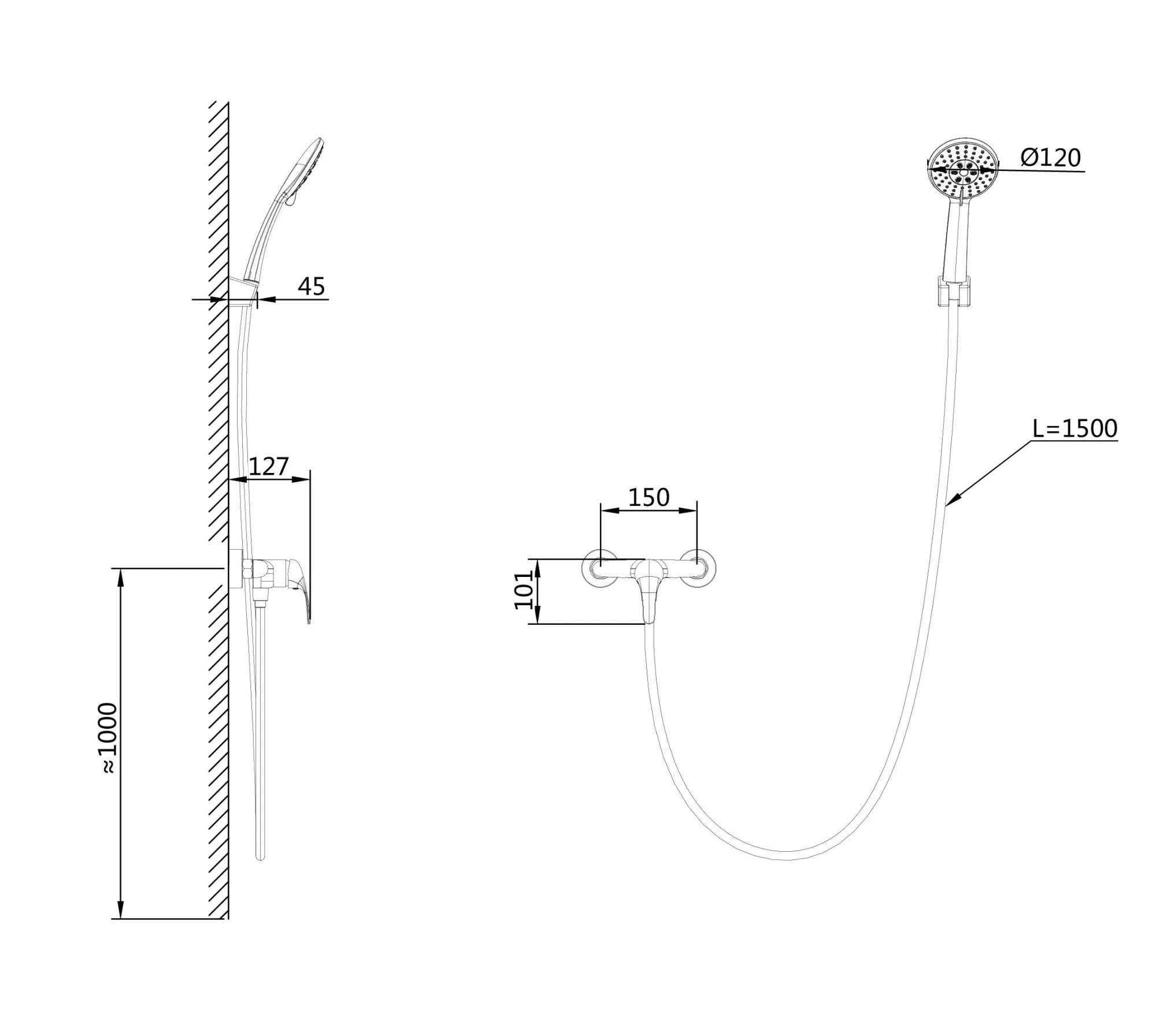 смеситель, душевой шланг/ держатель для душа, душевая лейка, эксцентрики, монтажный комплект