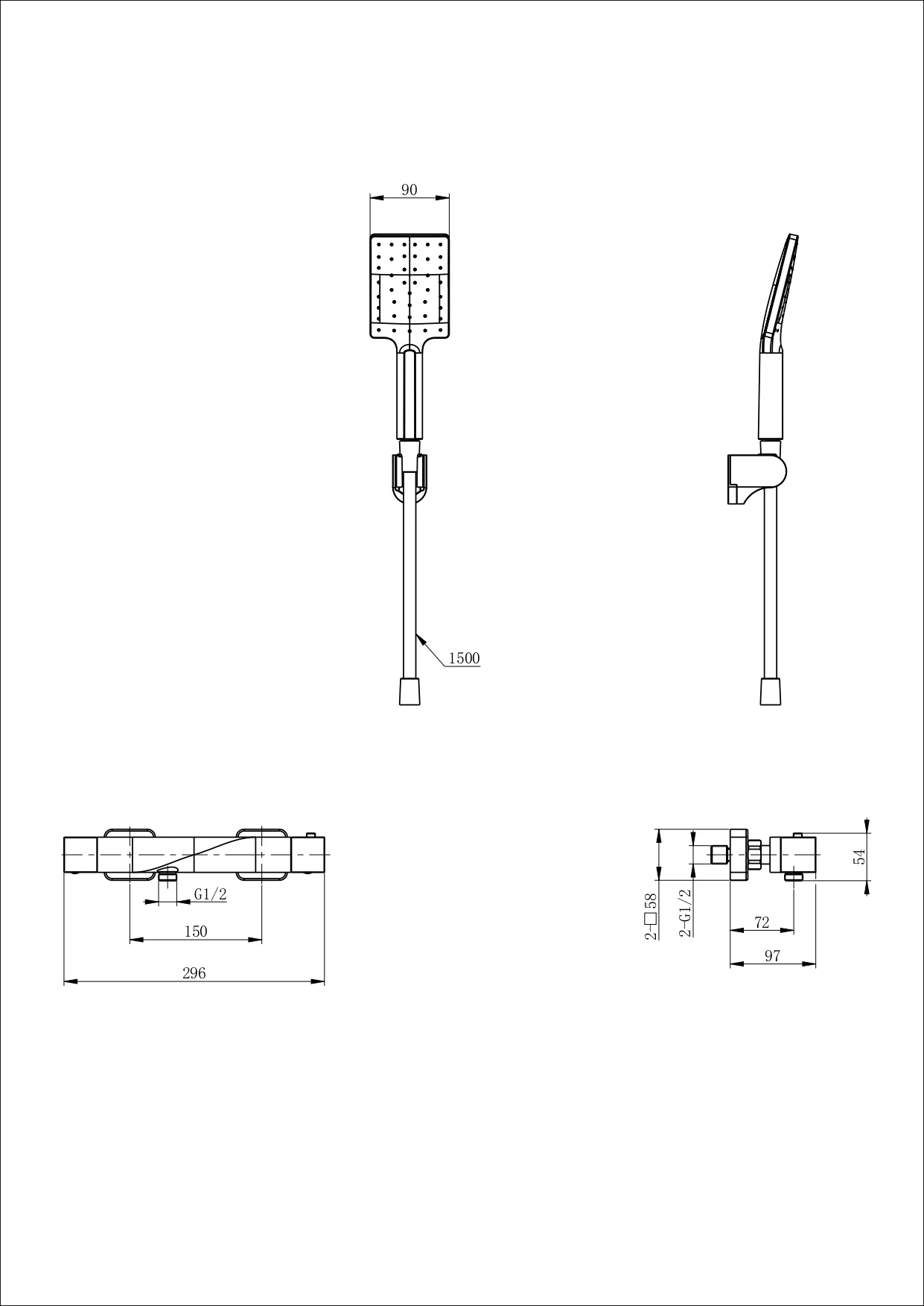 смеситель, душевой шланг/ держатель для душа, душевая лейка, монтажный комплект