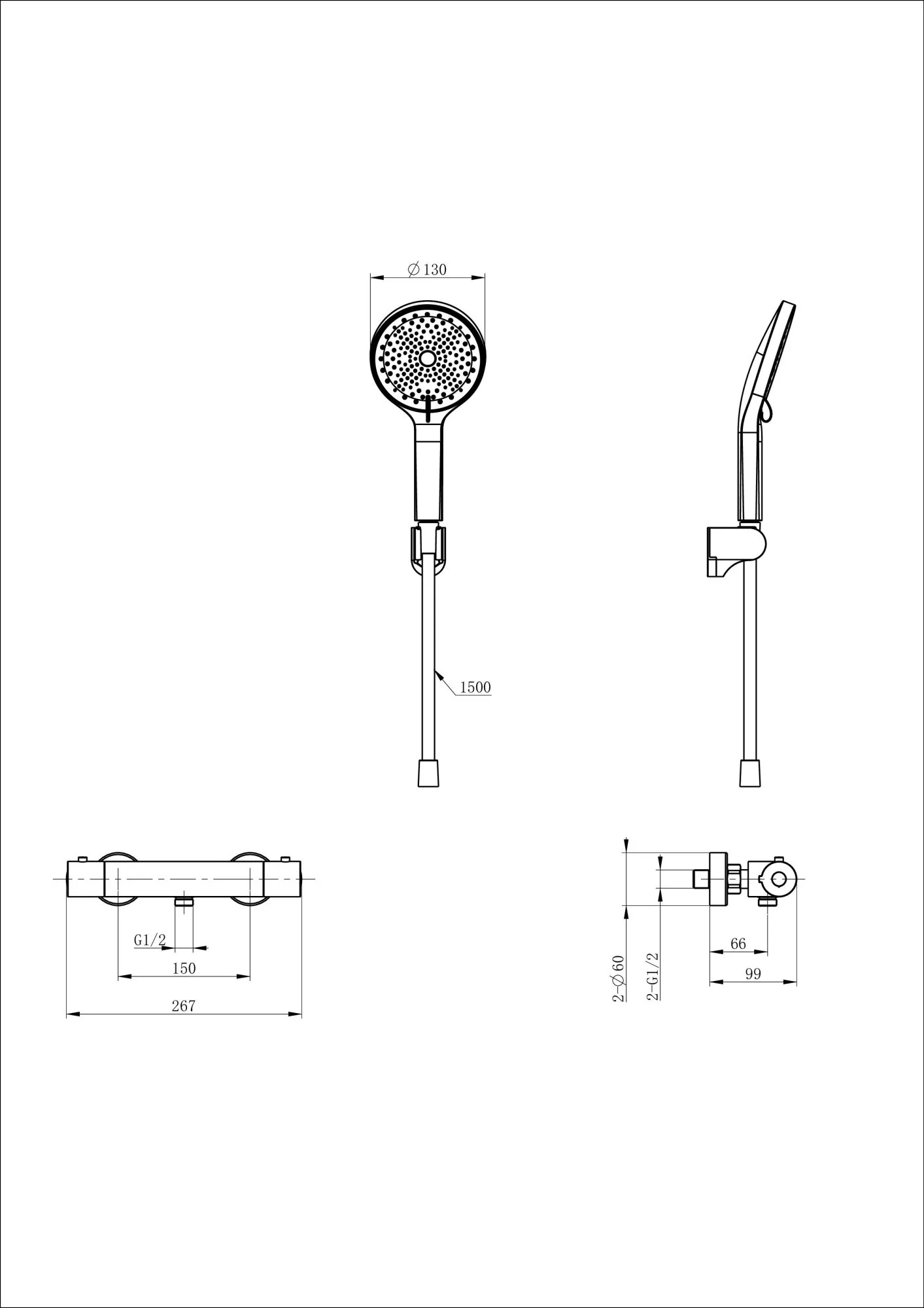 смеситель, душевой шланг/ держатель для душа, душевая лейка, монтажный комплект