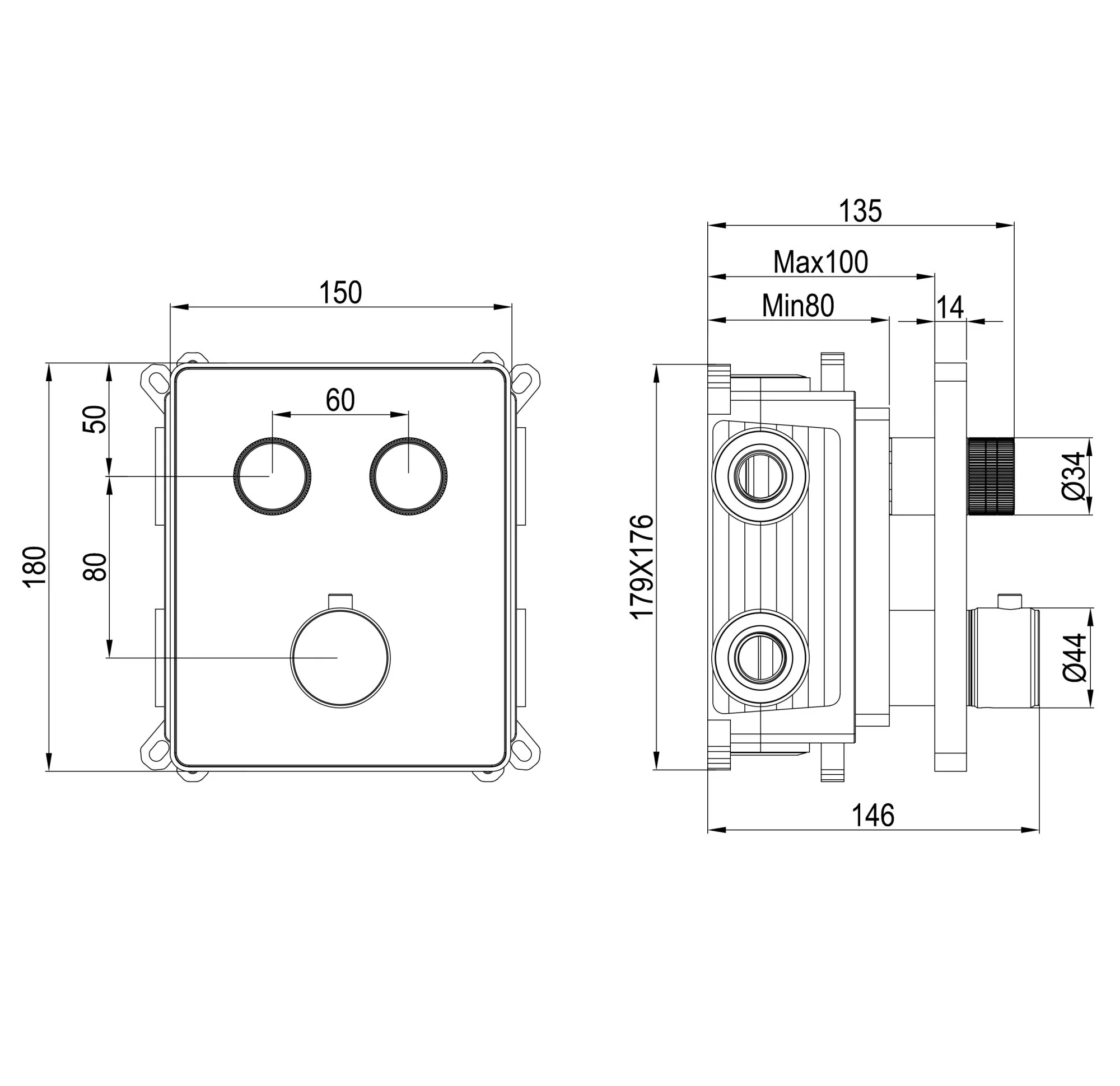 Смеситель для душа Wonzon & Woghand (WW-INF322A-CR) термостатический встраиваемая на 2 потребителя, хром