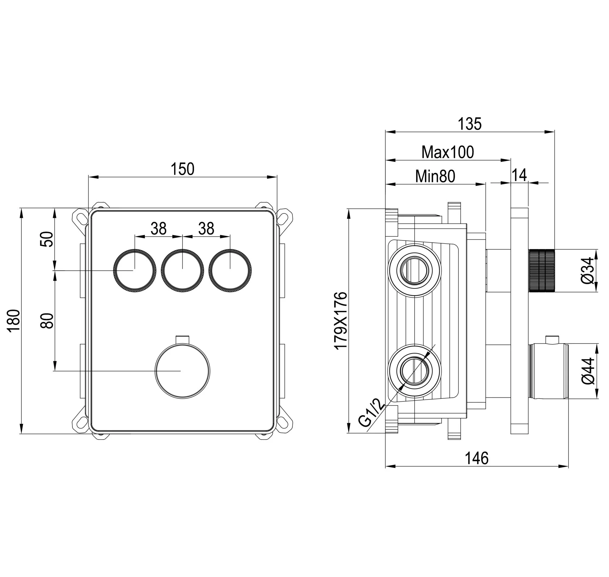 Смеситель для душа Wonzon & Woghand (WW-INF323A-GM) термостатический встраиваемая на 3 потребителя, темный графит