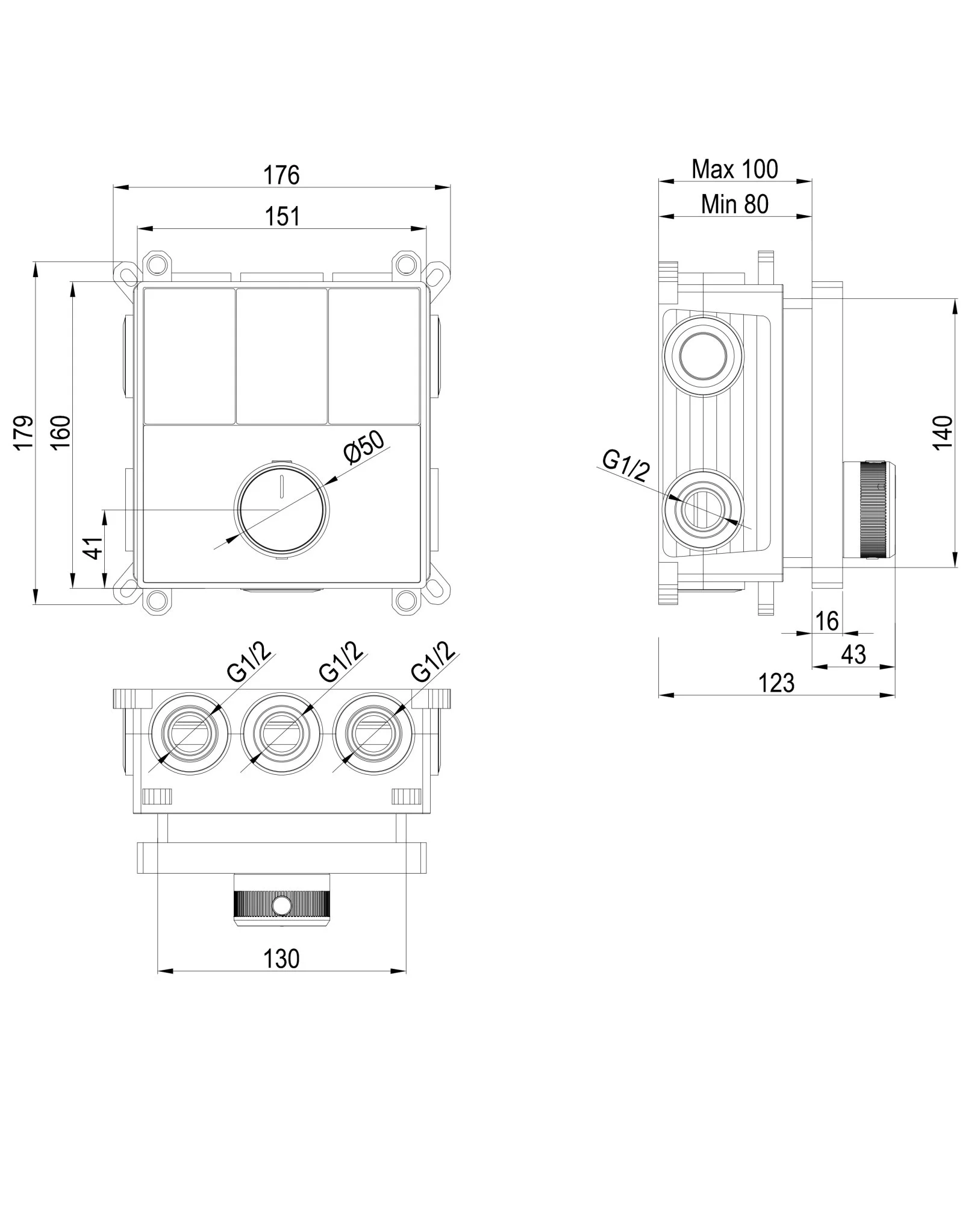 Смеситель для душа Wonzon & Woghand (WW-INF363A-MB) термостатический встраиваемая на 3 потребителя, черный матовый