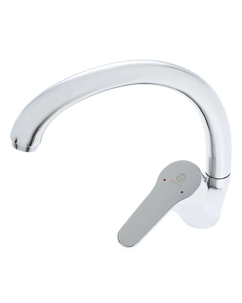 Однозахватный кухонный смеситель с поворотным изливом Agger Exact A2100200 гармонично дополнит интерьер в традиционном и современном стиле. Выполнен из латунного сплава с повышенным содержанием меди. Фирменный картридж Agger делает лёгким управление напором и температурой воды. Хромированное покрытие, за которым очень просто ухаживать мягкой салфеткой, обеспечивает блеск на долгие годы. Аэратор экономит воду и, обогащая струю воздухом, делает её мягкой и без брызг. Длина и высота поворотного излива позволяют комфортно мыть посуду, не задевая мойку.