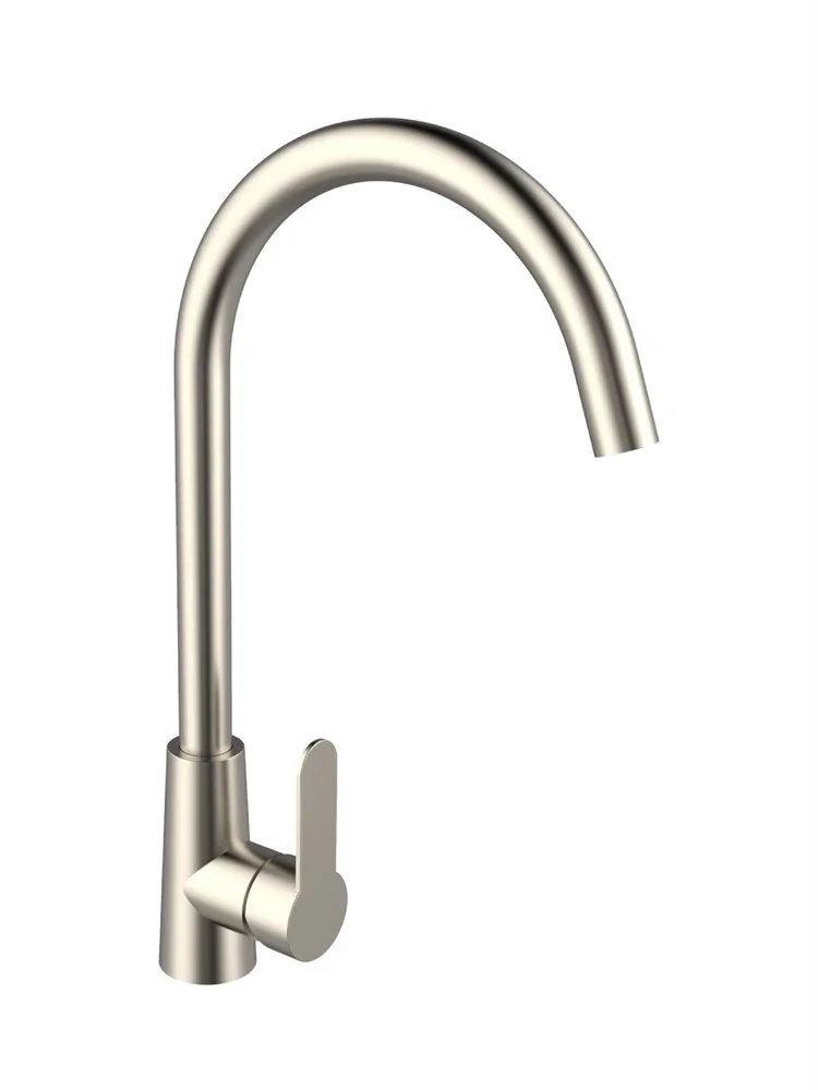 Смеситель для кухни с поворотным изливом Agger Splendid - эргономичное решение для современной кухни. Выполнен из латунного сплава с повышенным содержанием меди. Фирменный картридж Agger обеспечит легкое управление напором и температурой воды. Покрытие в цвете матовый никель (вакуумное напыление), за которым очень просто ухаживать мягкой салфеткой, долговечно - сохраняет первозданный внешний вид на протяжении долгих лет. Аэратор экономит воду и, обогащая воду воздухом, делает струю мягкой и без брызг.