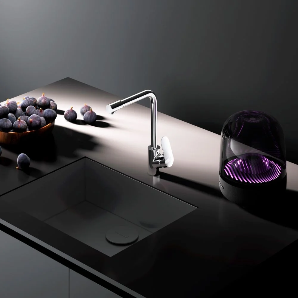Долгожданное пополнение в линейке кухонных смесителей Like – смеситель для кухни со встроенным каналом для питьевой воды. L-образная архитектура излива позволит разместить смеситель на мойке любого размера и даже под низкими шкафчиками при полном сохранении функционала и комфорта в использовании.