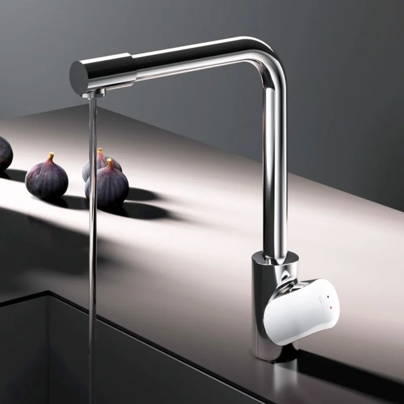 Смеситель оснащен встроенным каналом для питьевой воды. Благодаря прогрессивной технологии Fresh Boost при вращении ручки на 90 градусов вы можете наслаждаться чистой питьевой водой. Для получения обычной воды просто управляйте смесителем привычным способом.
