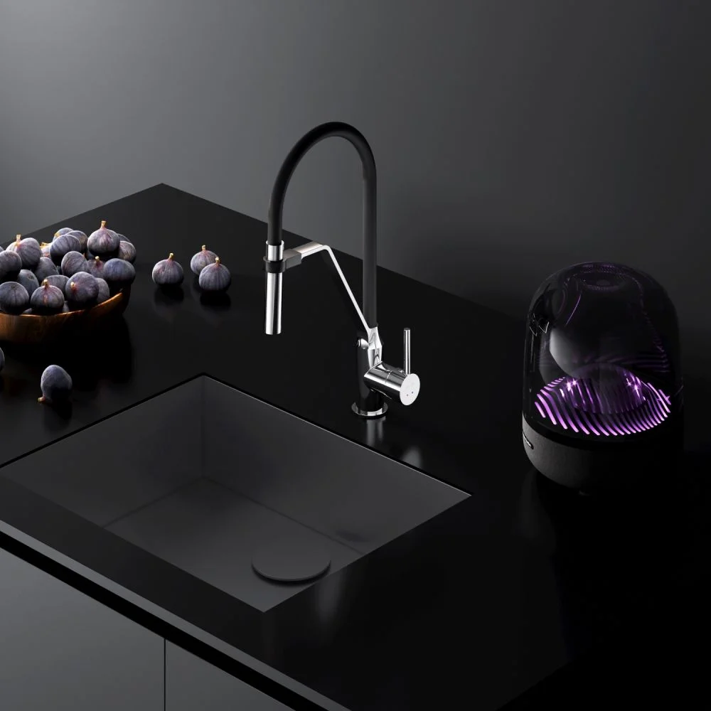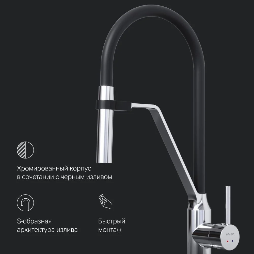 Стильный и функциональный смеситель для кухни с профессиональным изливом.