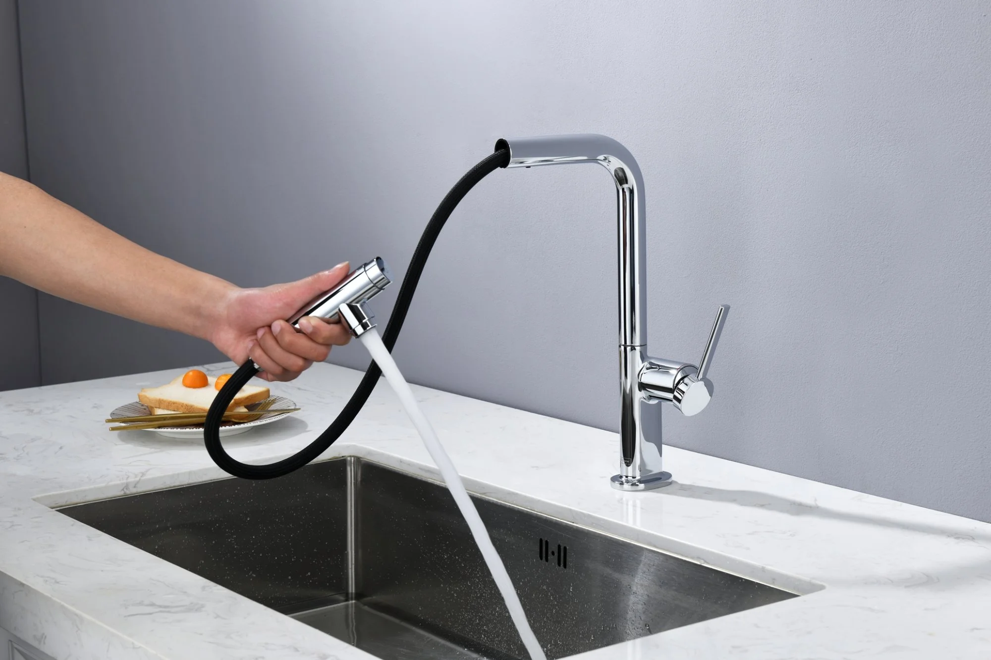 на кухонную мойку, на столешницу