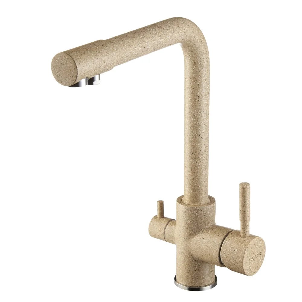Смеситель Руан для кухонной мойки от компании Акватон. Подключение к фильтру пиьевой воды. Совмещенный излив. Цвет смесителя специально подобран в соответствии с цветом кухонных моек Акватон из литьевого камня. Корпус смесителя выполнен из латуни, что гарантирует долгий срок эксплуатации изделия, сопротивление коррозии и безопасность для человека. Декоративное цветное покрытие отличается высокой силой сцепления с поверхностью смесителя, обеспечивая устойчивость к царапинам и сколам.