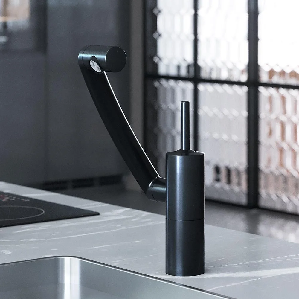 Глубокий матовый цвет дополнен покрытием High Gloss которое уберегает поверхность смесителя от мелких повреждений. Невероятная синергия! Вращение излива вокруг своей оси в совокупности с подвижным аэратором и регулировкой высоты — это дает смесителю Arc право называться самым функциональным смесителем своего класса — ведь вы с легкостью можете направить поток воды в любое место раковины а также даже помыть столешни