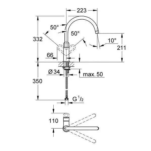 - поворотный трубкообразный излив