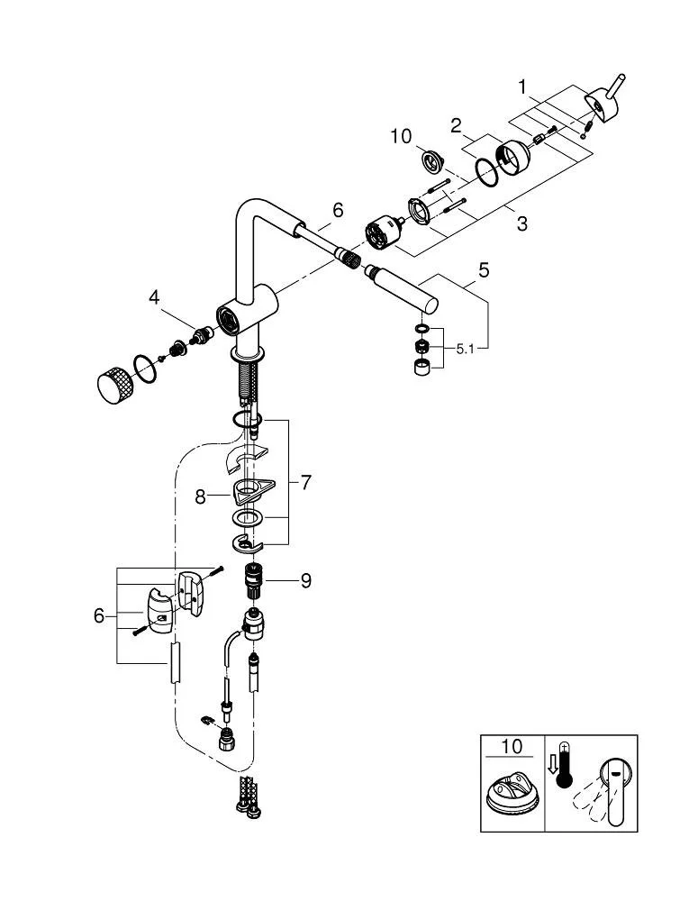 Смеситель для кухни GROHE Blue Pure Minta с функцией фильтрации, суперсталь (119707)