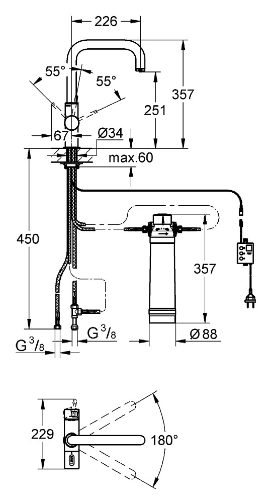 Этот кухонный смеситель из серии GROHE Blue Pure подает свежую питьевую воду прямо из-под крана. Система фильтрации GROHE Blue Pure, которая активируется отдельным рычагом для подачи воды, очищает воду от нежелательных примесей, ухудшающих ее вкус и запах, включая хлор. Помимо впечатляющих функциональных возможностей данный смеситель для мойки также отличается эффектным внешним видом и способностью играть главную роль в интерьере кухни, причем износостойкое хромированное покрытие GROHE StarLight лишь подчеркивает его лаконичный дизайн. Высокий излив, вращающийся в радиусе 180°, позволяет с легкостью наполнять высокие емкости. Технология GROHE SilkMove обеспечивает плавность регулировки напора воды при минимуме усилий. Разумеется, в данном смесителе также предусмотрены все функции обычного кухонного смесителя. Избавьтесь от необходимости носить домой тяжелые бутыли с водой и наслаждайтесь чистым вкусом свежей питьевой воды.