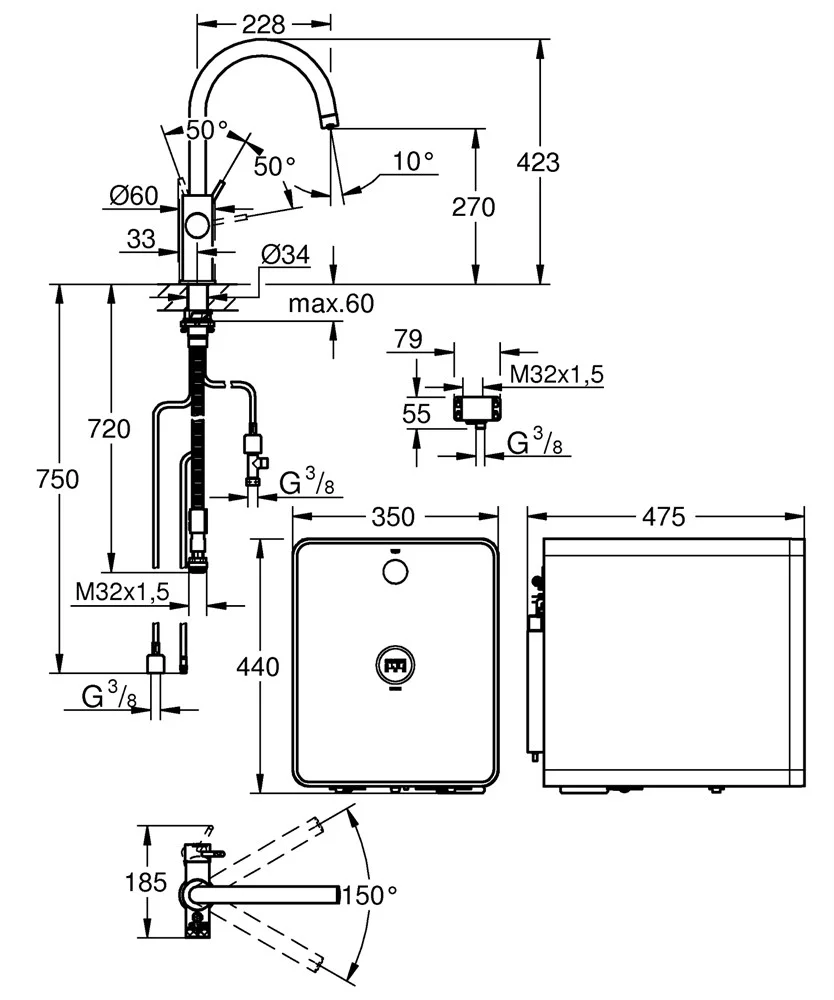 Купить Смесители для кухни производства GROHE (Германия), коллекция GROHE Blue Red in One, код товара: 263844 можно выгодно в Сантемо.ру: