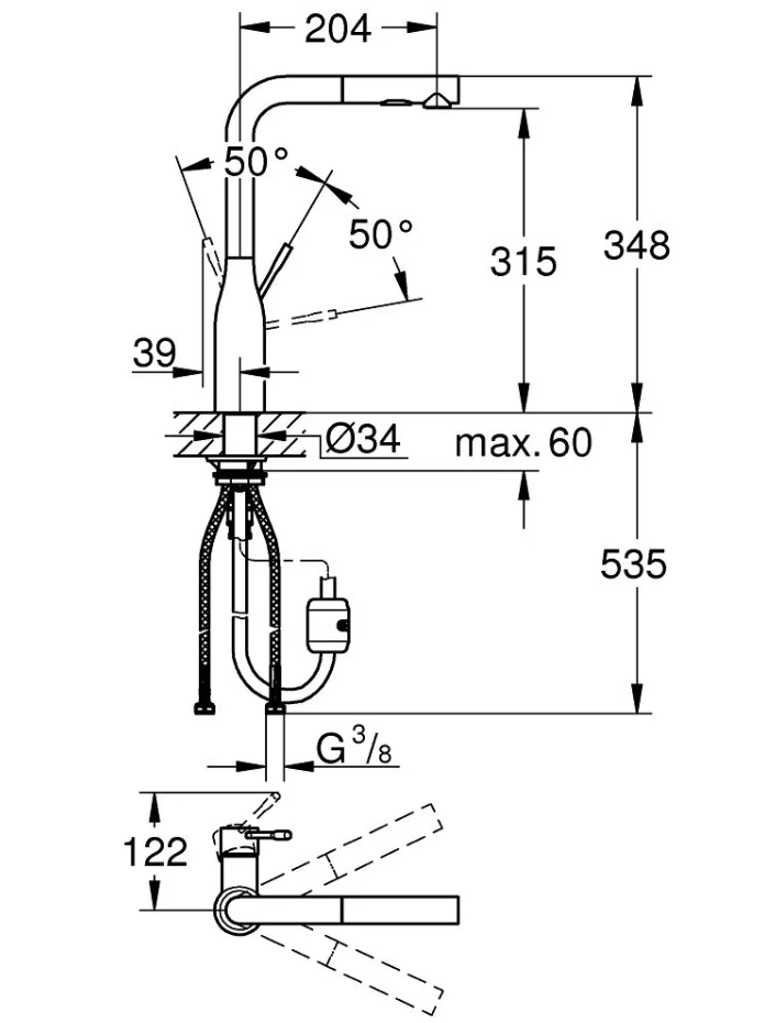 - GROHE EasyDock Легкое вытягивание и возврат на место выдвижного излива